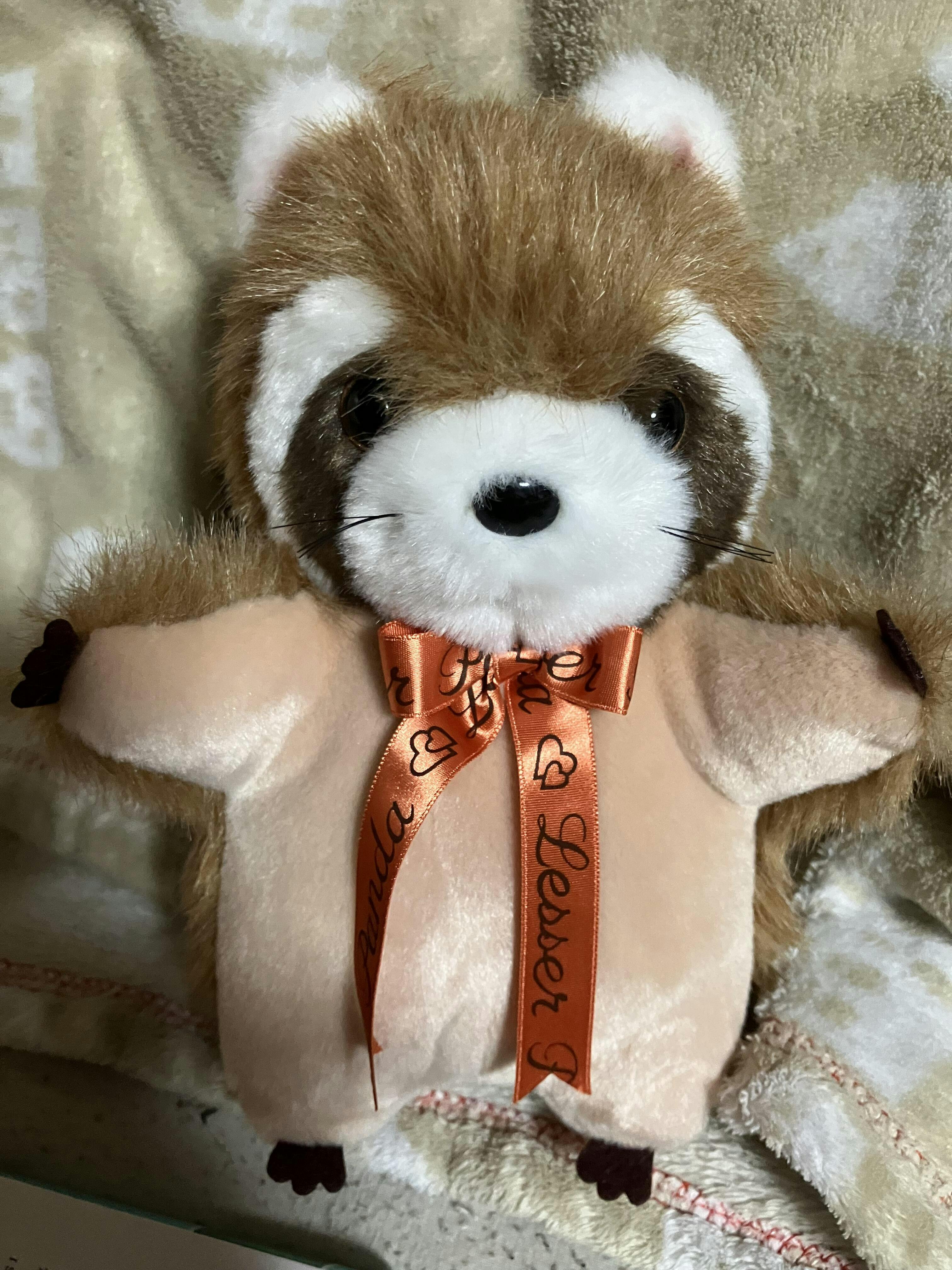 とてもとてもかわいいです。尻尾が大きくてふわふわで本当にかわいいです。子供の頃に同じもの(もう少し小さいサイズだったかも?)を動物園で買ってもらったのですが、その後無くしてしまいました。好きな動物を聞かれたら「レッサーパンダ!」と即答するくらい好きだったのに、無くして以来罪悪感で好きな動物にレッサーパンダを挙げることができなくなっていました。今回こちらでこのぬいぐるみを購入し、大好きだった気持ちを思い出すことができてとても嬉しいです。ふんわりしたお顔や広げた手、胸のリボンに尻尾の鈴、全ての要素がかわいくてたまりません。大事にします。ありがとうございました。