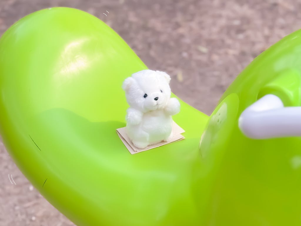 自転車の置物にまたがるクマちゃん、公園の遊具に乗っているクマちゃんがとても楽しそうに遊んでいるお写真を拝見し、すごく心が癒やされました。